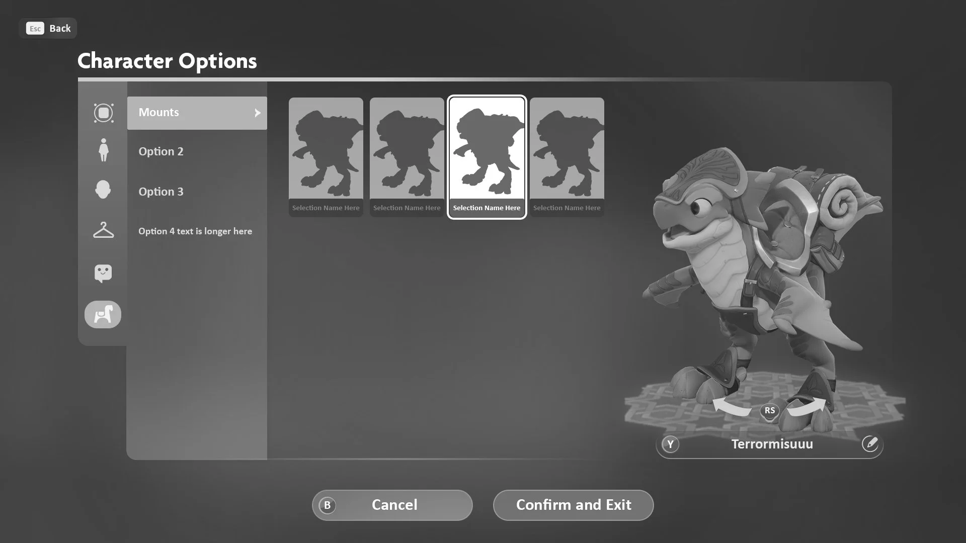 Selecting one of the worlds from the list will also change the scene in the middle to showcase the player’s custom character as well as their mount (if they’ve unlocked it at this point). The placeholder hearts were also to indicate the NPC Heroes that they’ve met and befriended in that world.