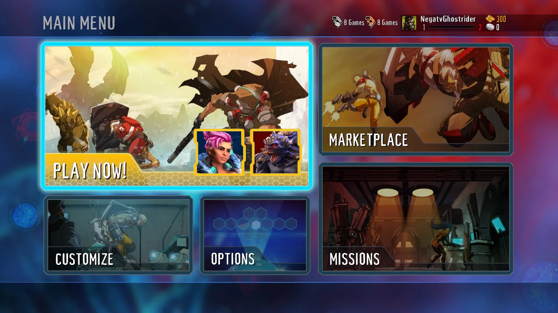 I was a Senior UI Artist/Designer at PlayStation's San Diego Studio. I was working on Kill Strain, a unique 4 vs 2 vs 4 team Free-to-Play title on the PlayStation 4. I worked directly with a small team of an Art Director, Concept Artists, Game Designers, UI Engineers and 3D artists to implement the front end menus, in game UI, and post round rewards, marketplace and all other screens that need User Interface content. All menu screens, icons, Augment Icons, character abilities, medals, trophies, and UI related content are designed by myself and one other Senior UI Artist.